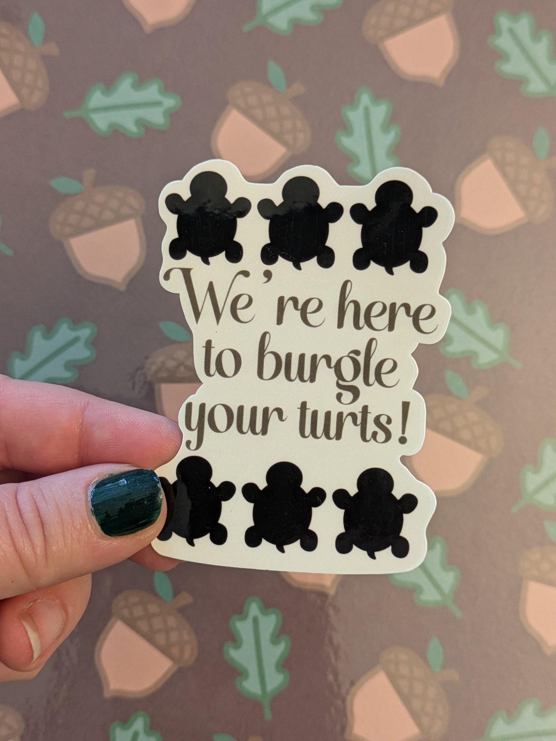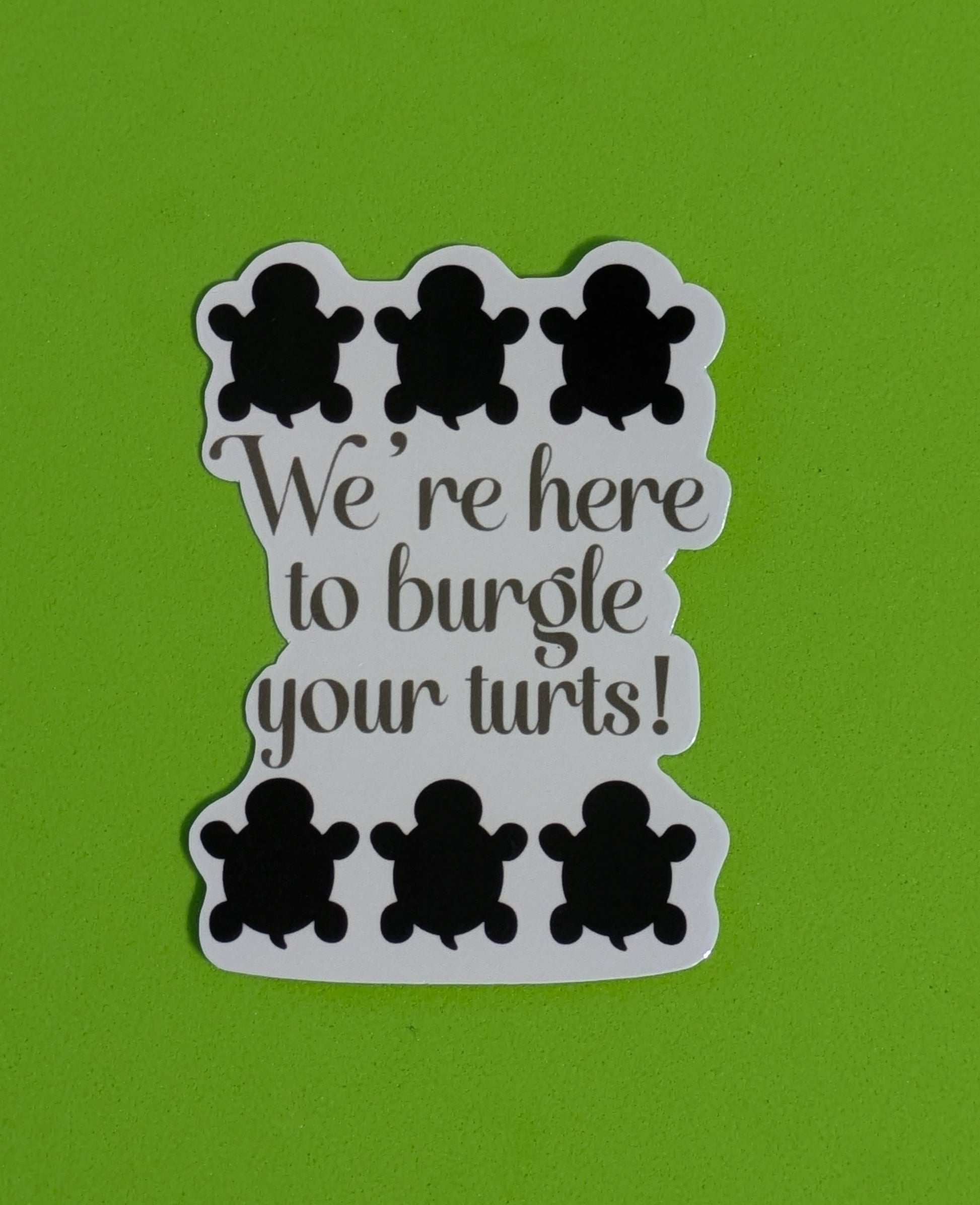 We’re Here to Burgle Your Turts, Glossy Vinyl Sticker